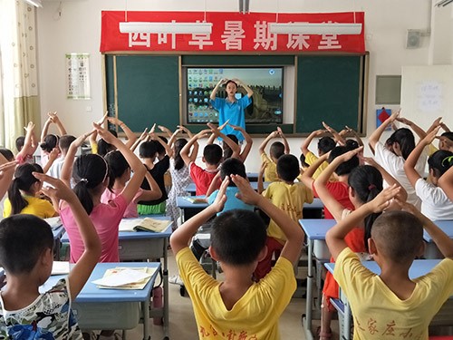 7月25日,为增强同学们的身体协调能力,让他们体会到肢体语言的魅力,fun88官网体育“四叶草”暑期支教队在朱家庄小学举办手语课堂。此次课程由支教队队员胡悦授课。