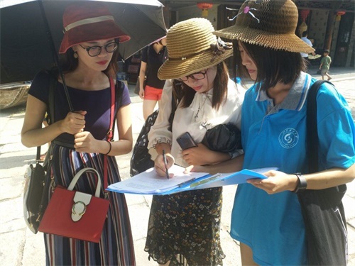 正式调研伊始,团队成员与游客服务中心相关负责人进行了详细交流。他们告诉大家,近年来,城市化发展的过程中,虽然人们的生活水平不断提高,但他们对古文化愈加渴求,这种现象一方面刺激了古城当地旅游业和商业的蓬勃发展,另一方面也促进了物质文化遗产和非物质文化遗产的保存,如抗战文化、运河文化、饮食文化、宗教文化等。这最终形成了文化带动商业,旅游业发展经济的良好文化产业链。除此之外,工作人员还特别说明了当代游客的旅游素质在日益提高,街道变的干净,空气变得清新,商家与游客的关系变得和谐。之后,团队快马加鞭,对热心商家和游客以问卷形式进行了调查,便于团队更好地了解当地经济和文化。夜晚,团队一行欣赏古城夜景,灯光绚丽迷人。安保人员向团队介绍说说该景区的游客晚上游玩的居多,人们都前往观赏夜景。
