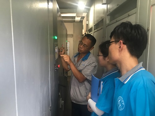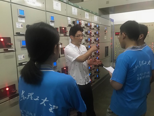 进入企业后,首先映入眼帘的是由面积广大的太阳能电池板组成的光伏发电站,发电站的负责人带领成员参观了整个发电站的监控测量网络,介绍了光伏发电站的发电入网原理,并带领成员实地参观变压器、用电器等重要组件。他向团队成员介绍,企业现已建成260亩10兆瓦的光伏发电站,平均每天产电50000度,全年生产1200万度电全部上网。发电站运用田光互补原理,合理利用土地资源,在太阳能发电板的间隙种植中草药等经济作物,为集团医药研究板块提供原材料,实现了资源利用最大化。