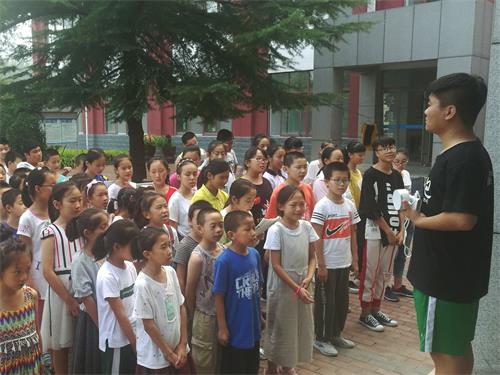 7月31日,山东理工大学“回望改革四十年,乡村艺体支教”团队爱心支教新一周的第二天,为了让即将到来的文艺表演完美收官,下午,员工们在趣味音乐课上排练歌曲。