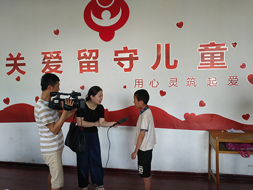 电视台工作人员在特色课程结束后,对队长李瑾进行采访,主要问了一些关于支教的目的、感想及对当地带来的影响的问题。李瑾简要说出当地儿童因缺乏父母关爱变得自闭、自卑、不敢与外人说话等一系列心理问题,在支教过程中实践团成员耐心开导、细心教育,现在的他们活泼开朗了许多。接着对员工们进行了简单的采访,了解了孩子们的日常生活,接受支教学习后的变化和感受,孩子们说出了对所有老师们的感谢,最后用天真的笑容回答了他们一切。