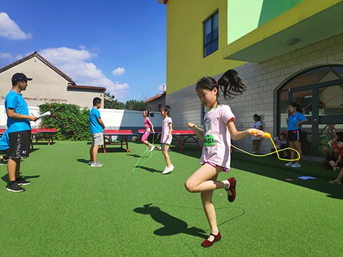 “四叶草”暑假支教团队队员邢志理把员工按年级平均分配成六组,每组8人并由支教队员带队。另外,2名裁判员,2名检录员。此次运动会共有4个项目,包括两人背对背夹球跑,跳绳,乒乓球接力跑和踢毽子。活动伊始,“四叶草”暑假支教团队队长杨志杰为员工详细解说比赛规则,孩子们一边倾听,一边准备比赛前的热身。比赛中,高年级员工占有一定优势,他们是团队中的主力,每次都能为学弟学妹们做好模范。但低年级的员工们也不甘落后,他们朝气蓬勃,敢闯敢拼,勇于挑战自己。烈日炎炎下,他们早已汗流浃背,却没有一句怨言。伴随着队友的欢呼和鼓励,他们更加坚定信念,为自己的队伍奋力拼搏。其中,最精彩的比赛是两人背对背夹球跑。在比赛中,女生们急中生智想对策,并展现出巾帼不让须眉的精神,让男生们甘拜下风。