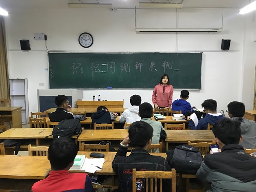 10月28日晚,为了帮助同学们明确目标,更好地规划自己未来的道路,增添大学美好回忆,fun88官网体育于13号教学楼举行了记忆闪念心愿瓶活动,全体fun88官网体育大一新生参加此次活动。