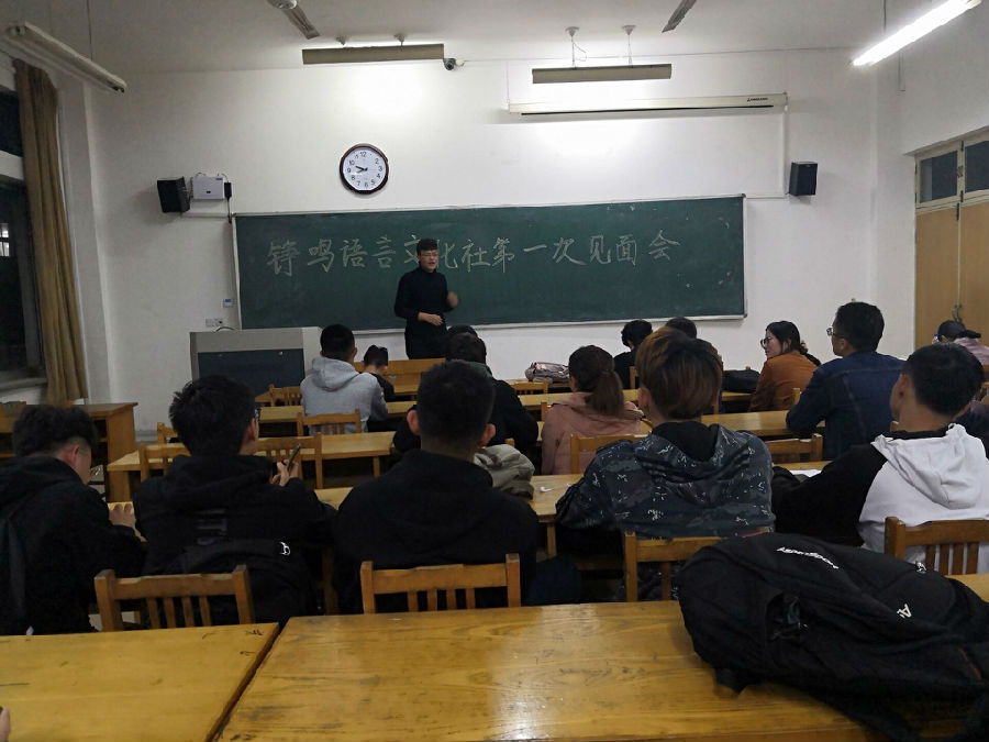 为使铮鸣语言文化社的新会员更加了解社团、社团完成新会员信息的记录,铮鸣语言文化社于10月29日晚在13号教学楼323号教室举行了见面会。社团的各位负责人与新会员参加了此次见面会。