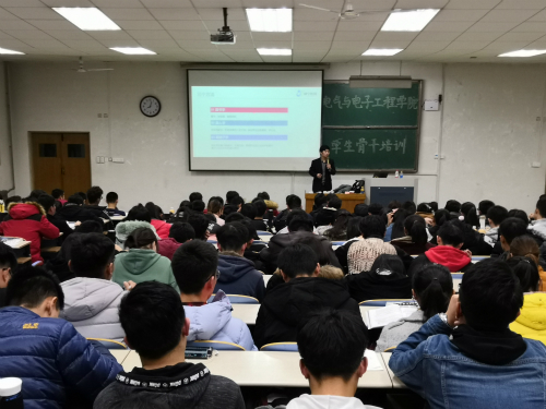 培训会伊始,白如康简单介绍了此次培训会的目的和意义以及培训会的主讲人张永华。培训会正式开始,张永华通过讲述自己的大学经历,用幽默诙谐的语气引出了此次培训会的话题——如何精彩的度过老员工活。他从“一个体会”、“两个关键点”、“三条建议”、“三个方法”四个方面详细表达了自己的见解。首先,他认为,在大学所有做的事情都是为了积累人生经验。有了目标,生活就会充满阳光,它会给你带来你心中所想拥有的东西,满足你的意愿。但只有目标,没有规划也是无济于事的,张永华通过讲述硕宁教育创始人刘硕与刘博的事例向同学们证明了一个好的规划对未来会有一个好的影响。随后,张永华给同学们提出了做好时间规划、提升自己的能力、找到职业方向三条建议以及跟书学、跟人学、跟圈子学的三个学习方法。最后,他鼓励同学们充分利用自己的黄金时期进行对综合素质能力提升及各方面的规划。在整个培训过程中,同学们全神贯注的听讲和记录,时不时地鼓掌以表赞同。