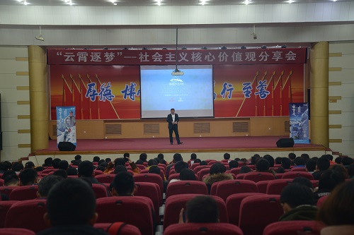 为倡导和弘扬时代精神,激励青年员工追逐梦想,12月11日下午,山东理工大学团委于三号教学楼报告厅举行云霄逐梦——社会之一核心价值观主题报告会。此次报告会邀请了山东盛唐新能源电力股份有限公司董事长、淄博光伏协会会长、淄博市户外运动协会名誉会长唐锋来给同学们分享8000米之上的登山故事。