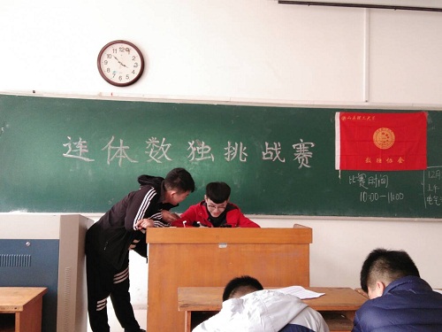 12月2日上午,数独协会在13教321教室进行连体数独挑战赛。此次连体数独比赛的题型为五连体数独。五连体数独即五个标准数独拼接在一起,其中四个标准数独与第五个标准数独有一个宫的交集,通过这些交集将五个标准数独联系在一起构成五连体数独。