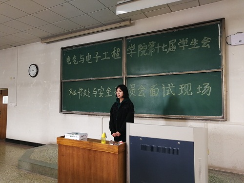 面试人员提前入场,有序入座,面试正式开始。前来竞选的员工个个都自信满满,胸有成竹。他们依次上台演讲,向评委和同学们讲述自己的优势、在员工会获得的收获、对员工会的贡献、以及当选后对未来的展望等。随后,评委们考察竞选人员各方面的能力,评委们根据竞选人员的日常学习生活状况和职务要求等方面对竞选人员提出问题,各竞选人员沉着冷静,对答如流。评委们以公平、公正、公开的原则进行考核,为员工组织的发展壮大输送新鲜血液。虽然各竞选人员所竞选的职位不同,但他们对竞选职位的热情都是相同的,他们所流露出的才华和能力,也让在场的每一个人对第十七届员工会都充满了期待。面试临近尾声,每位竞选的同学依旧精神抖擞,没有丝毫放松,充分体现了他们积极踏实、认真负责的精神。