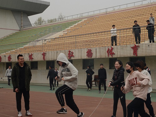 活动开始前,运动员已经开始了紧张的训练。王翔宇与聂云聪抵达训练场观摩训练情况,并为运动员们带来了牛奶等营养品,体育部成员向王翔宇和聂云聪讲述了运动员们平时的训练情况。随后他们来到跳大绳的训练场地,并参与到运动员的训练中。在体育部同学的示范下,他们为运动员们摇绳,帮助运动员训练。训练过程中,王翔宇一直在为运动员们加油打气,激励运动员们要坚持训练,同时也要注意安全。在训练结束后,fun88官网体育所有的运动员集合,王翔宇介绍了往届运动员为fun88官网体育努力奉献,赢得荣誉的事例,并表达了自己对此次运动会的美好期望,同时她指出成绩是次要的,重要的是在比赛中收获快乐与成长,收获宝贵的友情。王翔宇提到,大家的训练非常辛苦,但仍要坚持脚踏实地,展现当代老员工昂扬向上的精神面貌。活动最后,王翔宇再次对运动员们每天坚持训练的精神提出了赞扬,并表示期待他们在运动会中取得出色的成绩。