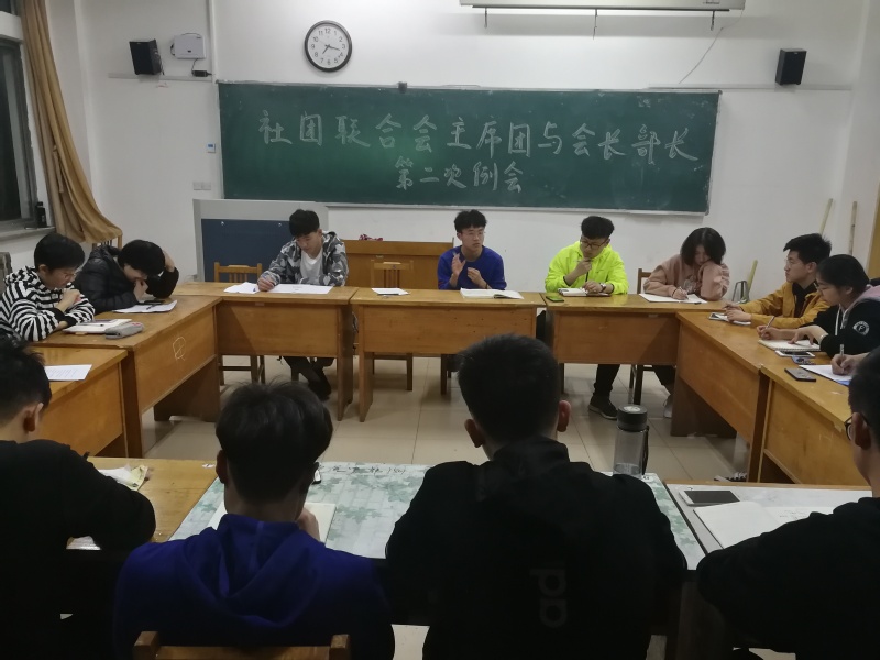 4月19日晚,fun88官网体育社团联合会于13号教学楼320教室举行第二次主席团部长会议。社联主席赵孟阳,副主席王岩、陈金虎以及各社团会长参加此次会议。