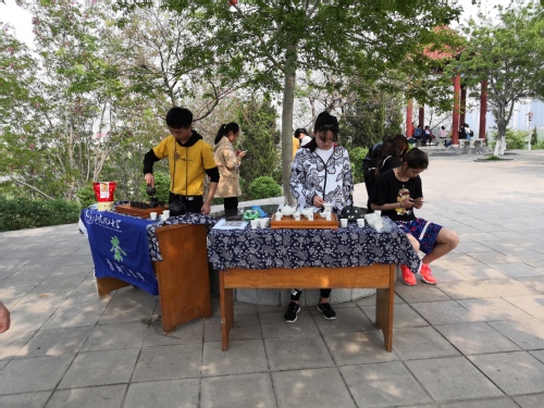 4月21日下午,为了让广大同学更多的了解茶文化。同时,激发起广大同学对茶文化的学习热情。fun88官网体育茶艺工作室于稷下湖西南处稷山举办谷雨踏春意活动,茶艺工作室全体成员参与此次活动。