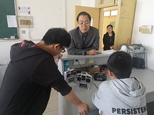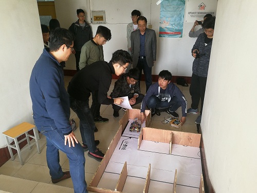 比赛前一天,电子爱好者协会的工作人员开始布置场地,为四旋翼自主飞行器的飞行测试做好充足的准备。活动当天,工作人员提前到场,紧张有序的做着准备工作,随后,参赛队伍陆续到达场地并进行签到。一点整,比赛正式开始,参赛队伍到达指定场地进行测试。此次比赛共分为论文和现场测试答辩两部分,其中现场成绩占比赛成绩的较大比重,其有九个测试项目,各个项目难易程度不同,各个队伍可根据自己的实际水平选择相应的测试项目,并提前为此次比赛做好准备。此次比赛的评委均由专业老师担任,每一位评委老师都会认真观看同学们的作品测试展示,并对每一组作品做出中肯的评价,充分体现了此次比赛的公平公正及专业性。比赛中涌现出一大批优秀作品,如数字频率计、简易电子秤、自动泊车系统、四旋翼自主飞行器等,展现出了同学们的智慧和对电子设计的喜爱。设计存在缺陷或者因时间问题没完成的队伍,评委老师都帮他们分析了原因并给予了适当的肯定与鼓励。在比赛过程中,刘东锋前来观看同学们设计的作品,与参赛同学进行了一番沟通并做出了适当的评价,还亲切的询问了工作人员关于比赛的各项事宜。比赛结束后,刘东锋对参赛队伍的努力做出了肯定,充分体现出电气公司对此次比赛的重视,以及对员工科技创新能力的培养。