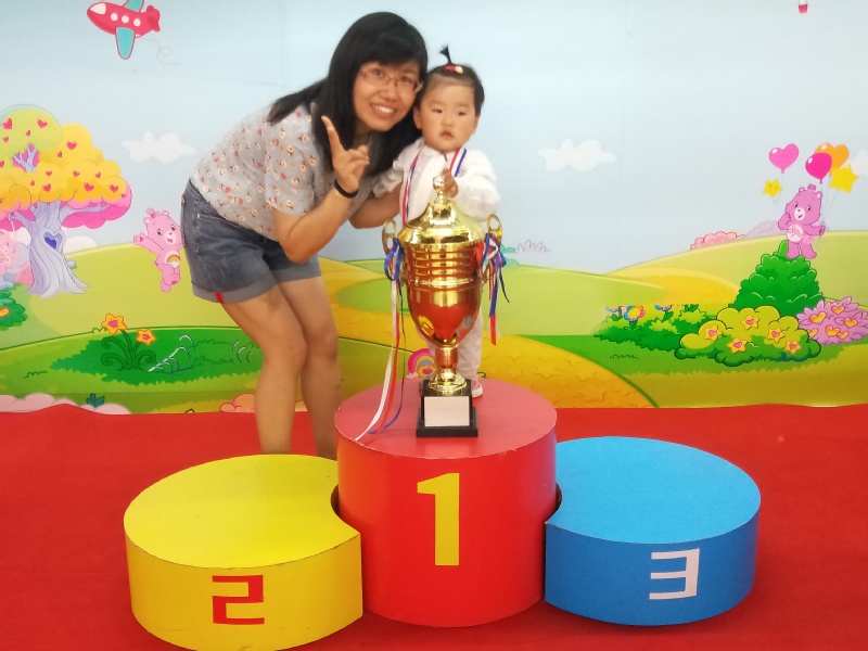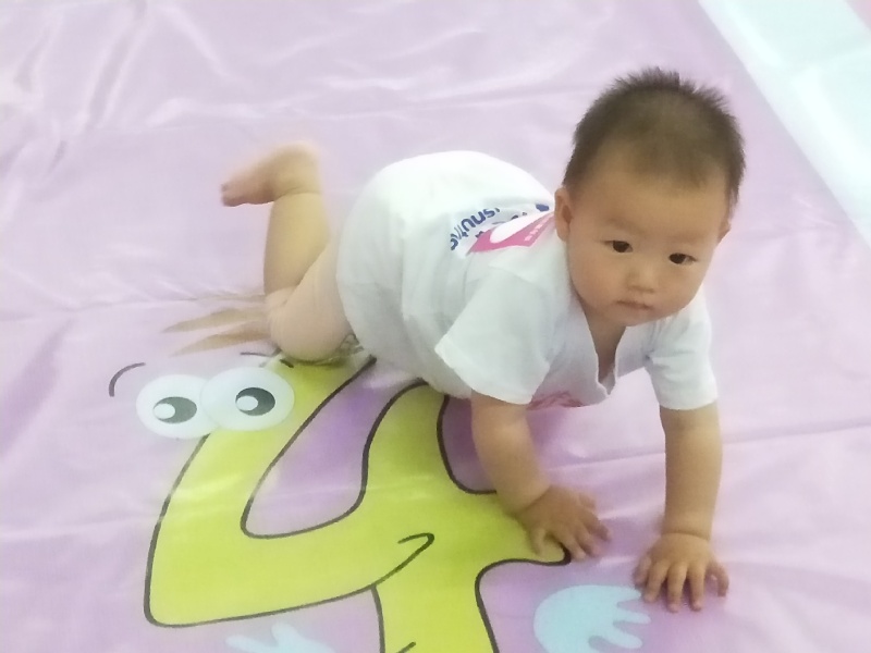 首先,志愿者们在指定地点集合,入场后,听从工作人员的分配将人员分为几组,分别进行不同的援助。比赛分为粉色赛区和绿色赛区两个赛区。粉色赛区的孩子们上午主要进行“翻身小达人”的比赛,比赛规则是由家长将宝宝平放在比赛区域,哨声响起,比赛才能开始。比赛期间,家长不可用手或身体辅助宝宝翻身,但可以用玩具吸引宝宝从而完成翻身。山东理工大学的志愿者们一部分人监督宝宝们完成翻身,另一部分负责给记录员报宝宝的成绩,从而促进“澳优”杯亲子嘉年华活动高速有效的进行。绿色赛区进行的是“小小建筑师”比赛,比赛规则是宝宝们从起点一次拿两个积木,通过中间的彩虹隧道到达终点,将积木运完并搭建成高楼最早的宝宝获得胜利。在志愿者的帮助下,宝宝们顺利的完成比赛。