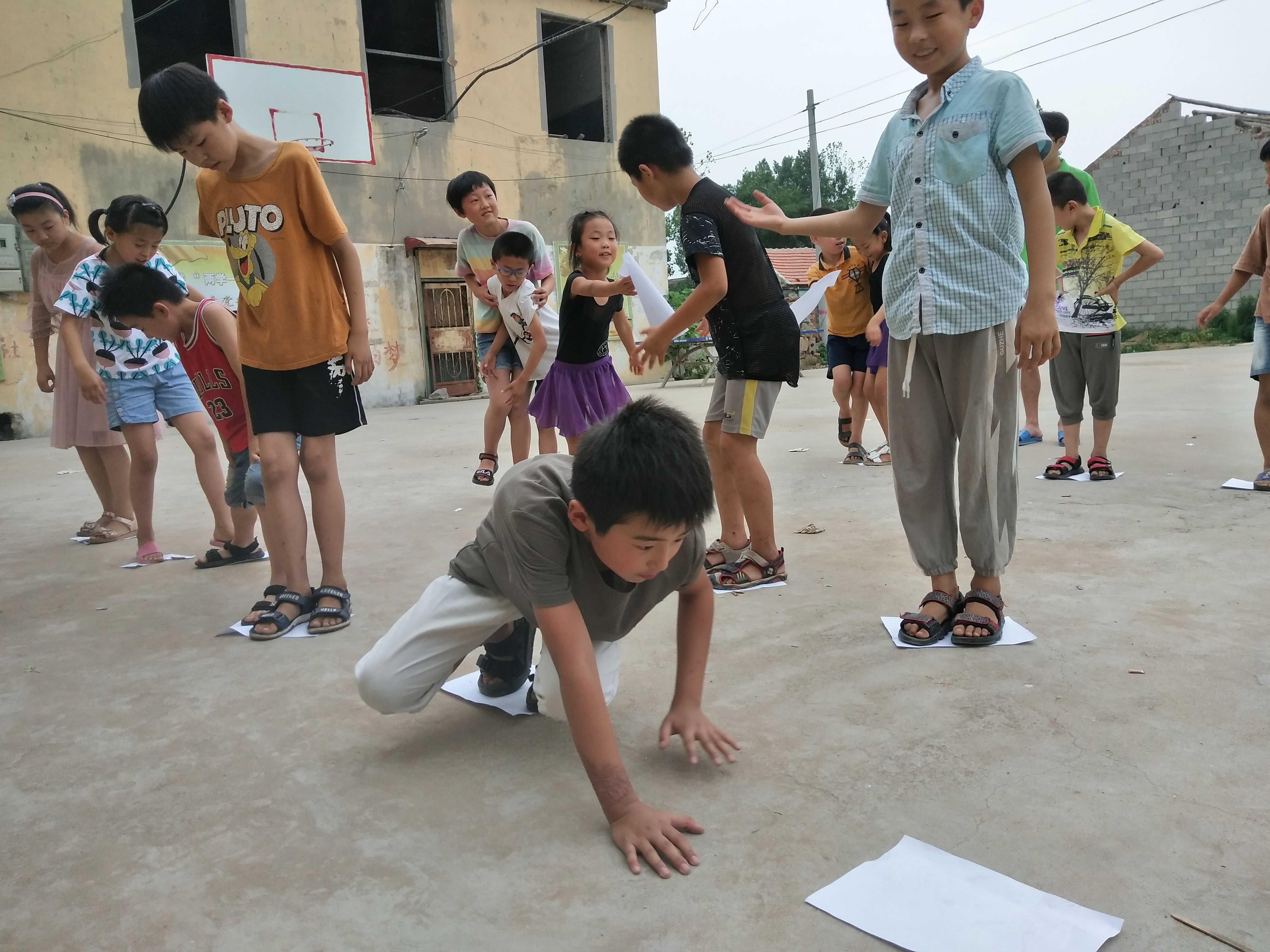 下午二时,实践团成员开始准备趣味运动会。他们经商讨决定设置四个游戏环节并借助趣味知识竞答这个额外的游戏环节帮助孩子们了解红色知识,同时还决定比赛采用计时制。最终方案确定后,实践团成员开始组织孩子们参加活动。