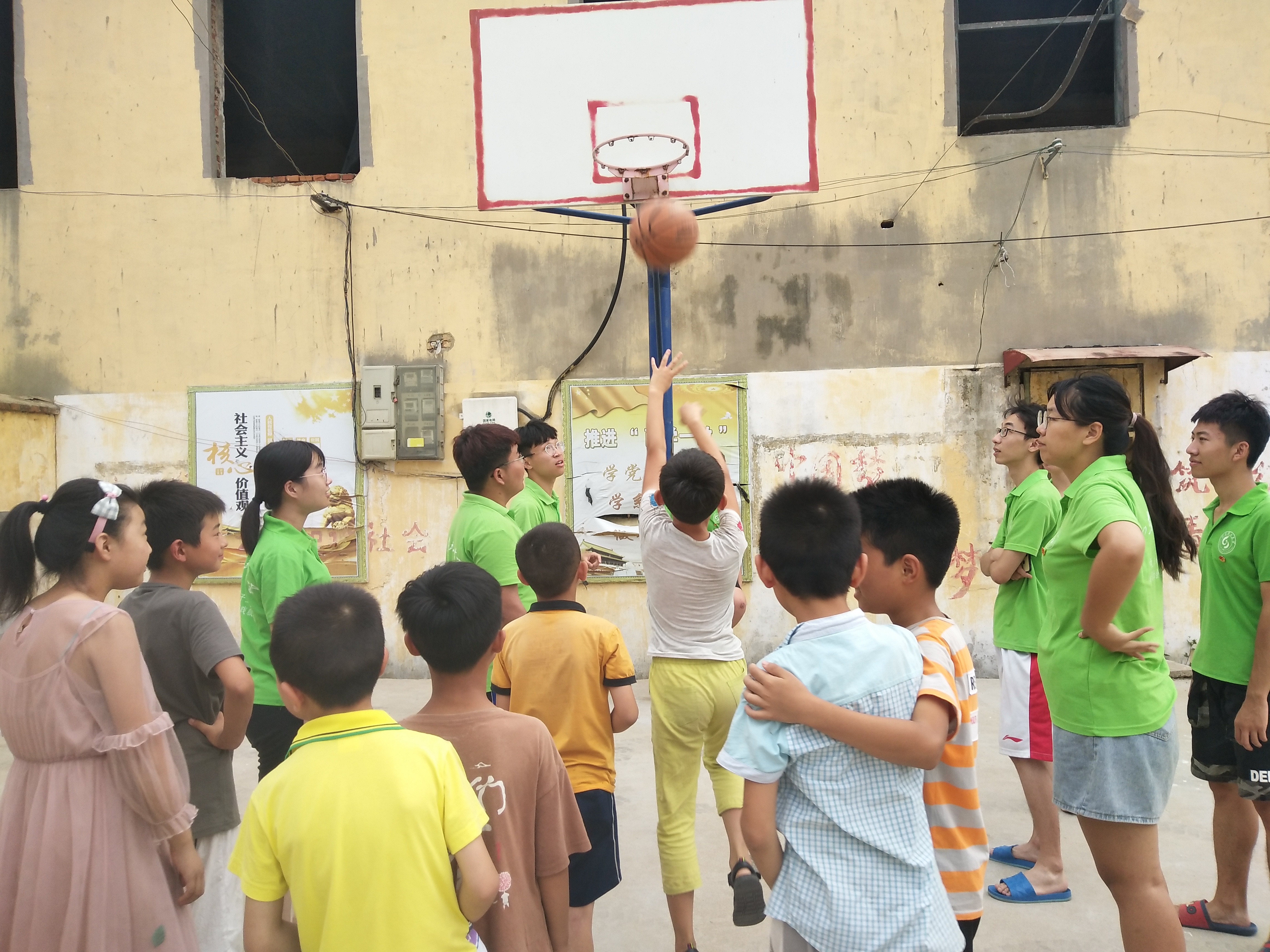 下午三时,在实践团成员将孩子按照高年级和低年级组合的方式分成五组并且将游戏各环节需要注意的问题告诉孩子们之后,运动会正式开始。首先,是趣味知识竞答,孩子们可以通过这个环节获得实践团成员提供帮助的机会。在这个环节,孩子们积极地抢答以为自己的小组获得更多机会。然后,是实践团成员为让孩子们了解当时红军长征的艰难而设置的环节——飞夺泸定桥。在比赛中各小组成员配合默契,顺利完成比赛。之后,是游戏的第二环节——秘传情报。各小组成员的传水方法不拘一格,他们用适合自己的方法完成比赛。之后,是游戏的第三环节——七七事变。各小组和比他们高大的实践团成员斗智斗勇,同时,他们在这一环节使用了之前在趣味知识抢答环节中获得的机会。最后,是游戏的第四环节——原地投篮。这一环节对孩子们来说是个挑战,但是孩子们总结经验,改变策略,最终在限定时间内完成任务。
