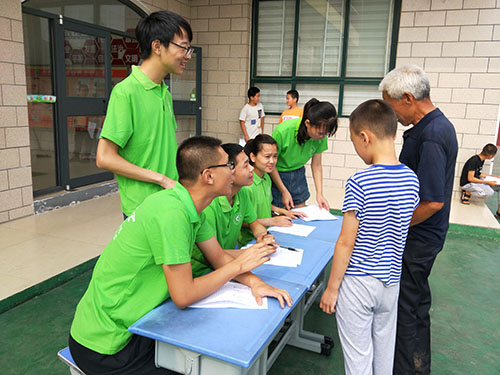 7月14日上午九点,实践团队开展招生活动。其中,三名队员负责登记报名员工的基本信息包括姓名,住址和联系方式,剩余队员负责与有疑问的家长们进行沟通和交流。经过一个半小时的招生工作,员工们的报名信息基本登记完毕。此次招生工作在华洪运队长的带领下顺利完成。