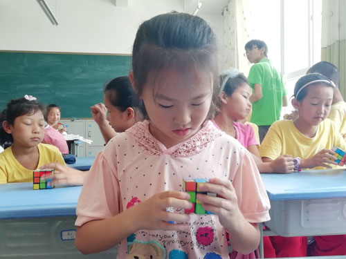 7月18日,是“四叶草”暑期支教开课第四天。今天,班里又开了两门新的兴趣课,魔方和心理健康教育课。