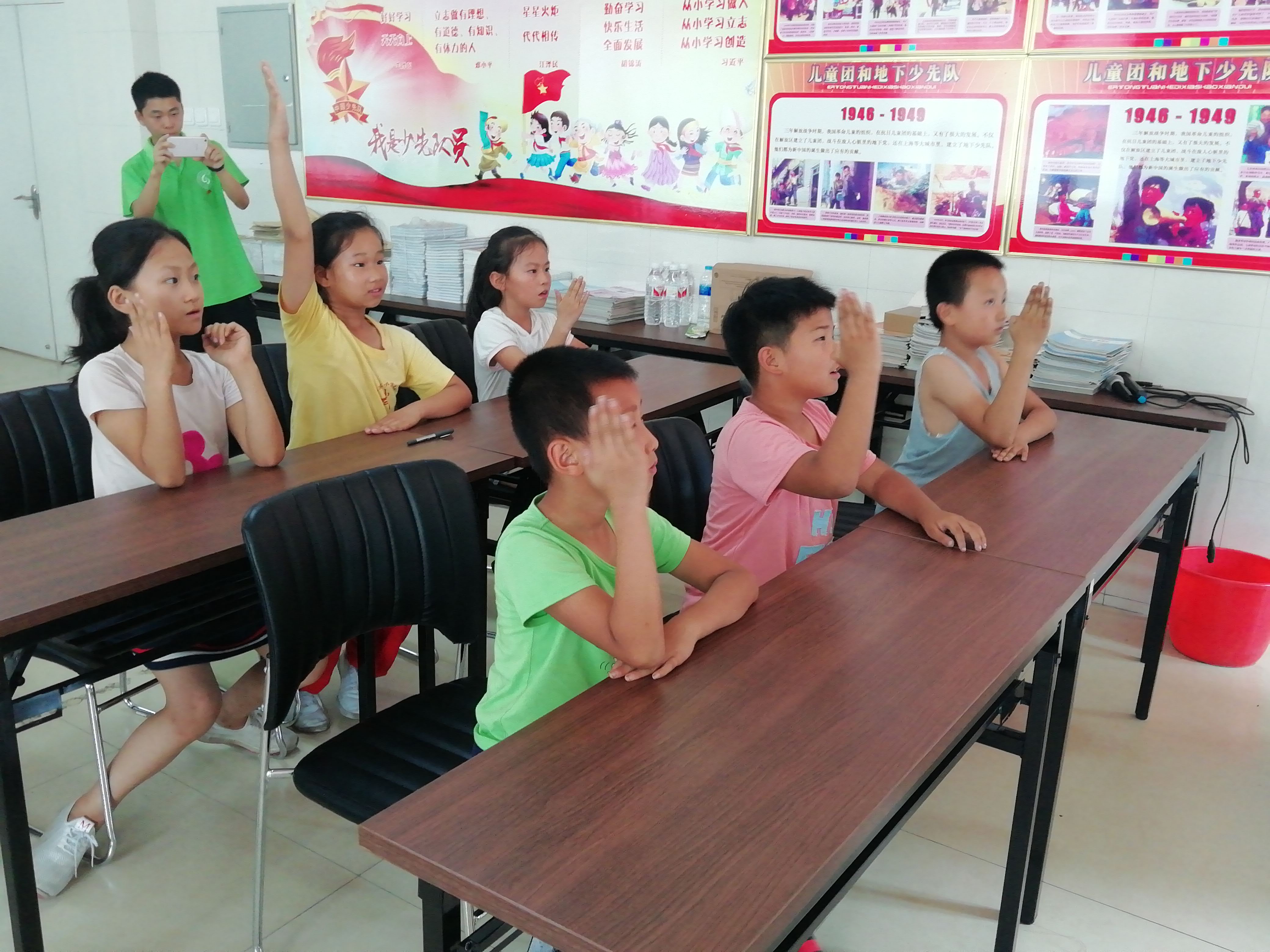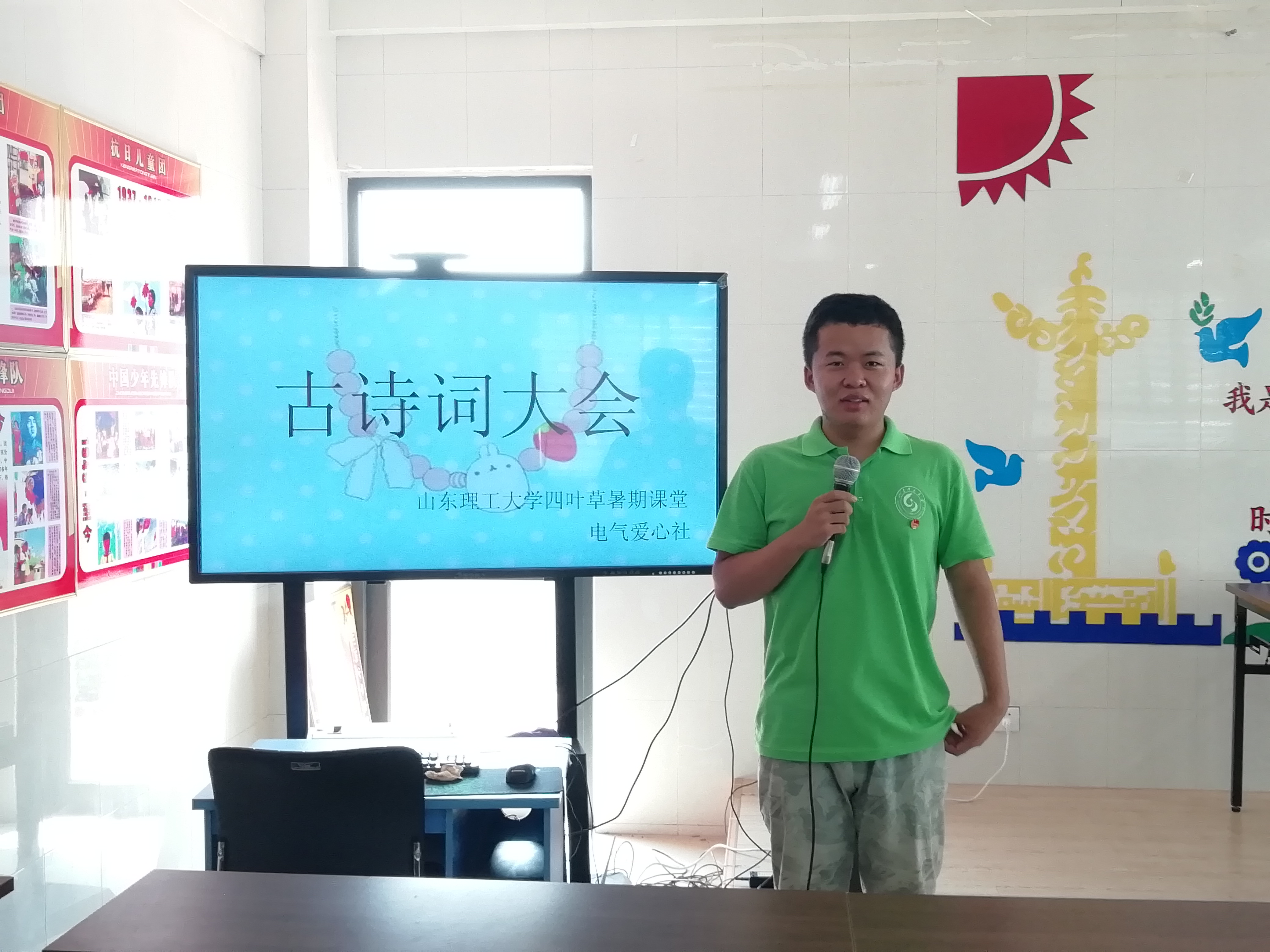7月26日下午,四叶草暑期社会实践团博山支队举行古诗词听写比赛。社会实践团志愿者范在乾主持此次比赛,全体支教志愿者和四年级、五年级和初一员工参加此次活动。
