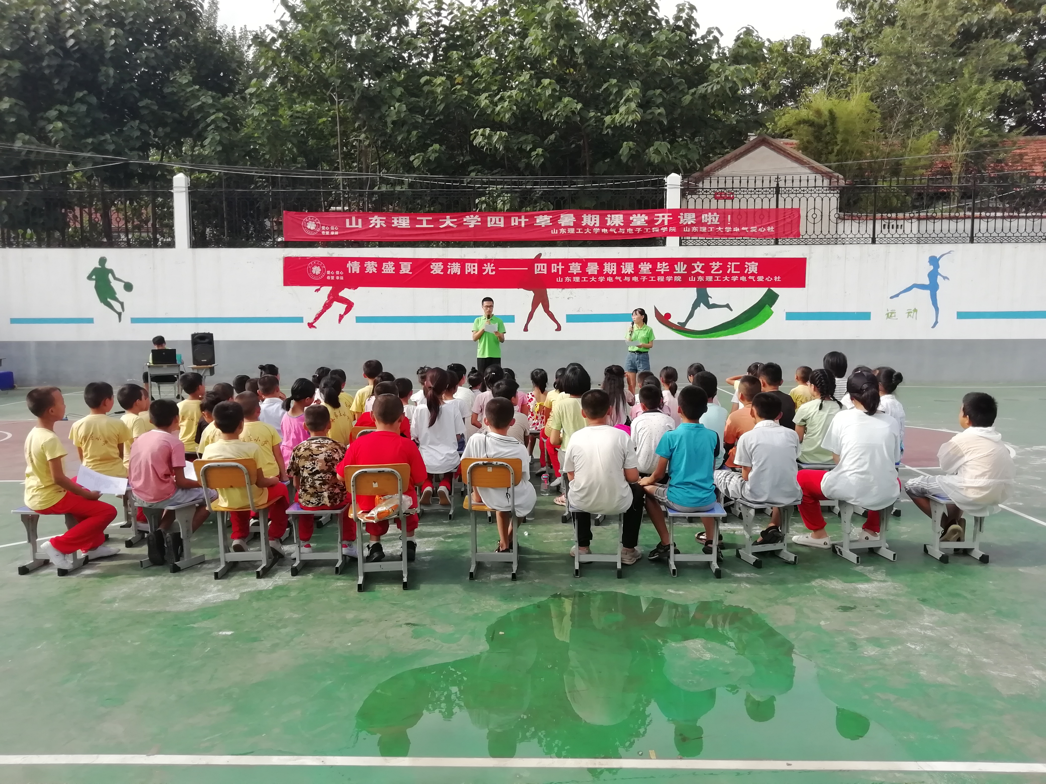 8月2号下午,"四叶草"暑期社会实践团博山支队在朱家庄小学举行"情萦盛夏 爱满阳光"四叶草暑期课堂文艺汇演活动。志愿者王浩东和孙淑敏主持此次活动。全体暑期社会实践团志愿者和支教员工参加此次活动。