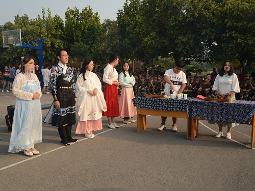 活动开始前,参与表演的社团和同学们在第三体育场进行最后一次排练,等待新生集合完毕后,表演正式开始。经过主持人简单的介绍后,身为fun88官网体育明星社团的非洲鼓社团率先上台表演,他们的表演一鼓作气、酣畅淋漓,紧张而又急促的律动感使台下的同学们不由的跟着鼓声打起了节拍。接下来是大一新生的表演,他们带来了一首首动人的歌曲,表演现场热闹非凡、掌声阵阵。之后教官们的表演让现场变得严肃起来,他们步伐整齐、铿锵有力,每一个动作都展现出中国军人的铮铮铁骨和英姿豪情。为感谢教官们的表演,茶艺工作室的同学上台为台上的教官们献茶,同时向现场同学展现博大精深的中国茶文化。紧随其后的是搏击健身社团带来的打靶表演,他们个个体魄强健,打靶声响彻第三体育场。在短暂休息过后,来自计算机公司的同学依次为大家带来说唱表演和歌唱表演,同学们沉浸在美妙的歌声中,几日军训的疲惫都一扫而光。最后,全体人员合唱《歌唱祖国》,演出至此落下了帷幕。