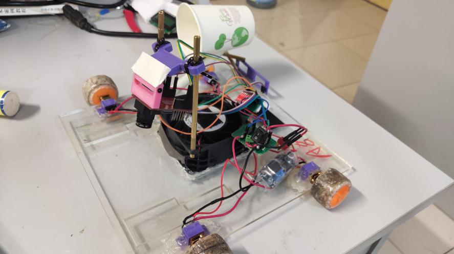 这次山东省智能制造大赛有多个比赛类别,如机器人擂台赛,机器人投篮赛,机器人举重赛,数铣,数车,SolidWorks建模等。电子爱好者协会此次参加的是机器人投篮赛和举重赛。投篮机器人利用高速风扇吸走空气,在车身底部与墙面之间形成负压,使机器人牢牢的吸附在墙面上。采用openmv作为视觉处理器的工具进行图像处理,通过二值化,滤波,线性回归等一系列方法,可以更好识别到墙壁上的黑线,并且返回黑线相对于机器人的偏移角度和偏移距离。配合pid算法可以精确控制机器人四个轮子的转速,使机器人在循迹的过程中十分流畅。利用两个舵机配合openmv完成投篮任务。举重机器人是一个仿生机器人,具有双足,四肢和躯干,整个机器人具有六个自由度,可以完成弯腰,下蹲,抓取杠铃,举起杠铃,最后放下杠铃一系列连续动作。采用了2个20kg舵机和4个15kg舵机,运用16路舵机控制器给舵机输出信号,运用3个稳压模块给舵机供电保证有稳定恒流的供电,可以举起2kg的物体。此次比赛电气爱好者协会面向各个高校,表现除了他们对电子产品的浓厚兴趣和创新的想法。
