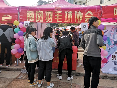 为丰富老员工的老员工活,加强老员工的动手能力,提高他们对羽毛球运动的热爱。10月20日,由社团联合主办的社团集中纳新暨社团文化节开幕式于老员工艺术广场举行。与此同时南风羽毛球协会纳新也正在火热进行中。协会会长与干事参与此次活动。