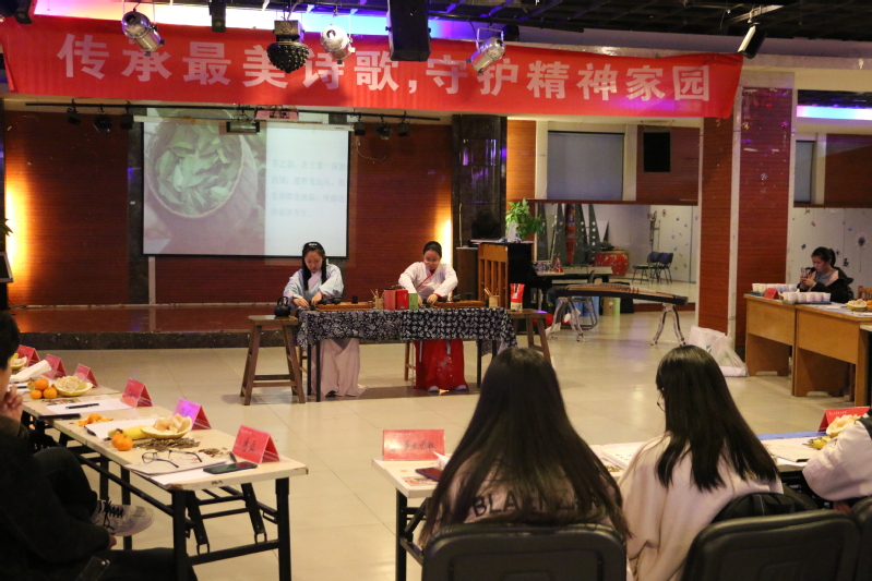 活动前夕,茶艺工作室组织部部长潘荣征带领干事陈熙文和王伊悦着汉服到场,为参加活动的人员准备茶水,活动伊始,茶艺工作室干事为参与活动的人员进行了茶艺表演,并为每位到场的人员分发茶水,活动现场井然有序,活动参与者们对茶赞不绝口,随后,参与者们纷纷上台,吟诵自己因茶而起的诗歌作品,最后,参与者们充分了交流互相在诗歌创作中的思路和感受。活动就此顺利结束。风絮诗社及茶艺工作室干事打扫了活动厅的卫生,最后大家有序地撤离了。