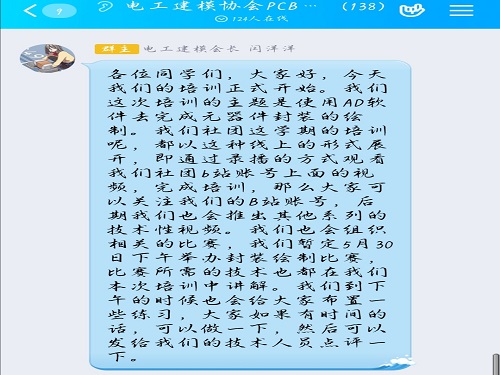 为使同学们深入了解AD软件,掌握电路板绘制的具体流程,完善同学们的PCB绘制技能。5月23日上午,电工建模协会举办了线上PCB封装设计培训会。此次活动以录播的方式进行,由电工建模协会会长闫洋洋主持,协会成员及爱好者参加。