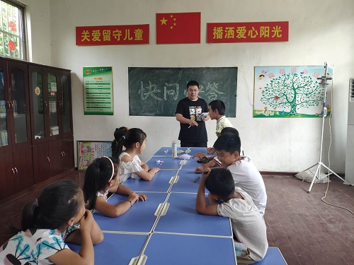 由于小员工的心智发育有限,支教队员想让同学提高参与热情,发挥员工学习主动性,就必须对课堂教学设计予以创新。首先,队员孙启舜、李肖搜索全网资源,下载整理教材,并结合相关知识删减和改编题目,希望以通俗易懂的方式帮助留守儿童理解并热爱知识。活动伊始,为保证竞赛的公平性,队员将同学按年龄分为高年级、低年级两组,并由任课老师分别为他们出题。随后,同学需在规定时间内抢答题目,答对一道题目的同学得一分,答错或规定时间内没有作答的同学不得分。这次知识竞赛为个人赛,两组最终成绩最高的两名同学可得到老师精心准备的学习礼包。在“快问快答”知识竞赛中,员工不仅收获到游戏的乐趣,同时还对学过的知识进行加强巩固。