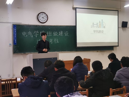 此次班级建设达标考核答辩会围绕2019至2020学年班级在制度建设、组织建设、学风建设、课外活动、遵纪守法等方面工作开展情况进行,重点介绍班级在过去一年工作中的好经验、好做法,公司2019级19个班根据抽签顺序依次上台答辩。答辩过程中,自动1901班介绍利用信息化技术手段推进班级思想教育、课程学习、日常管理,电气1901、电气1904、自动1904通过制作床头贴、自测考试、学业帮扶等举措以学风建设为核心努力推动班级建设;各班级主题班会、班委会等工作开展情况,以科技创新、课外活动为抓手服务员工成长成才工作等等,答辩中介绍地班级工作的诸多好做法不时赢得现场观众的点赞。答辩负责人衣装整洁,ppt制作精美,结构清晰,语言凝练,图文并茂,展现了公司学子良好的精神风貌。
