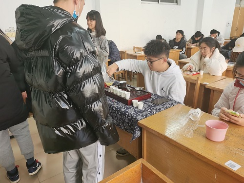 首先,由茶艺工作室社长潘荣征宣读活动流程,讲解茶的种类以及品茶方法,让同学们先对接下来的活动有所了解。待准备好沏茶茶具和相关工作后进入品茶环节,潘荣征社长分三个环节介绍了寿眉、金骏眉、凤凰单丛三种茶。每个环节品一种茶,开始由社长向大家依次展示茶叶,向同学们讲解此类茶的干茶色泽与特点,引起大家的兴趣。沏茶过后,潘荣征社长向在坐同学分茶,让同学们依次品味茶香,并且悉心向同学们介绍所品茶的种类、色泽、特点以及泡茶的手法,同学们专心听讲,依照品茶顺序进行品味,,当三个品茶环节结束后同学们写下参与此次活动后的体会,记录下品茶的感受,认真记录分析茶的色泽、香气。