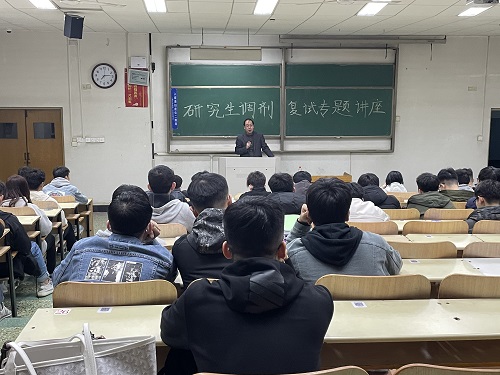 刘书记主要围绕当下的考研形势、如何准备复试以及调剂注意事项三个方面开展本次讲座。他从当前国内外经济社会发展状况和研究生初试报考情况着手,为同学们分析了目前面临的考研形势与挑战,鼓励同学们以正确的心态积极准备复试,争取到更高的学习平台增长见识,开阔视野,继续进行学术深造。对于复试的准备,刘书记结合学科特点着重分析了英语和专业课的学习并提出针对性建议。随后,他与同学们分享了调剂注意事项与技巧,提醒同学们提前搜集调剂信息,合理利用资源,打赢调剂“时间战”,做出正确有效的调剂选择。在此他特别强调同学们要增强忧患意识,合理评估初试成绩水平,提高调剂命中率。最后,刘书记为同学们集中进行了答疑解惑,就同学们目前的困难进行针对性帮助和指导,讲座在阵阵掌声中结束。