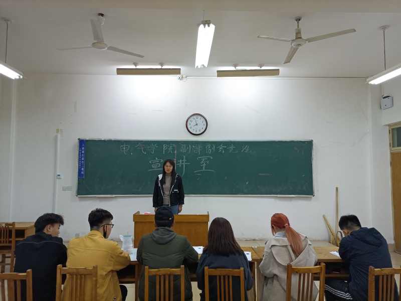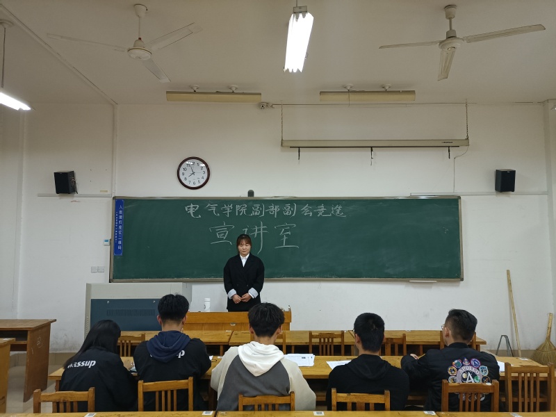活动正式开始之前,相关工作人员布置会场,竞选人员全部到322教室候场,并进行有序签到,会议秩序井然有序。晚上七点整,会议正式开始。首先,竞选人依次按顺序进行三分钟的演讲,陈述此次竞选自身的优势、工作思路以及创新举措等,同学们都积极发言,展现自身能力。随后,竞选者进行现场答辩,每个人演讲完毕后,都由相应社团的部长进行提问,这考察竞选同学相应素质和各项能力以及对所选职务的计划、创新,社团部长则需要根据相应的标准进行人员选择。最后,竞选人演讲完毕,面试活动结束。竞选结果将于4月24日公示。