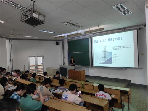 三位优秀的毕业生向同学们介绍了笔试前的准备工作和报名流程,结合自己的经历分享了笔试的复习策略以及经验技巧,讲述了面试前的准备工作以及应对技巧,向同学们强调了需要注意的细节,帮助同学们更直观地了解国网统一的招聘要求。