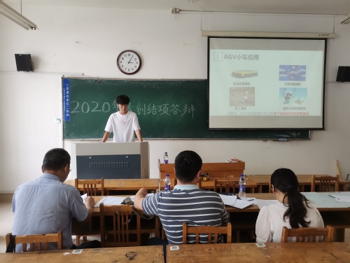 答辩活动开始前,各队上交结题报告以及答辩PPT,相关工作人员进行一系列的工作,为答辩的进行做好准备工作。下午14:30答辩正式开始,首先由主持人王政宣布2020大创结项答辩开始并介绍比赛流程,比赛分为3个环节,第一环节为一分钟团队介绍,第二环节为PPT演示,第三环节为五分钟答辩,答辩进行到三分钟时工作人员提醒答辩同学一次。此次答辩由12个校级项目和1个省级项目组成,答辩结束后评委可根据评分标准酌情进行打分。三位老师向项目成员们详细说明了创新类型项目结题基本条件后,各项目团队依次用ppt展示自己项目内容,从项目的来源及意义、主要研究内容、项目创新点、取得成果以及研究经费等方面进行了全面陈述,并对研究成果成果进行详细汇报。首先进行答辩的是基于北斗卫星授时同步的微网逆变器研究与开发的答辩队,接着依次是基于纳米级新材料的磁力研磨机、可折叠射频识别快递箱、AGV小车轨迹跟踪控制、基于物联网的风机运维云平台及配套设备研究、智能心率过滤口罩、基于负荷预测的变压器动态运行控制器、医用包装封口机控制系统研究、基于智慧社区背景下的智慧路灯设计与应用、基于外附开关的智能断路器和基于STM32姿态控制的多功能悬浮装置等团队进行答辩。在答辩过程中,答辩队员表现得自然、从容,评委老师对每个项目都进行了提问并提出了相关建议,同时也对同学们的科技创新精神给予了肯定。