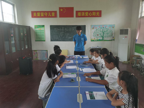 据山东理工大学fun88官网体育“四叶草”社会实践团枣庄实践小组梅蕾、季舒雅报道:秉承“历史悠扬,沐浴阳光,诗歌铿锵,磅礴传唱”精神,7月21日上午,四叶草暑期社会实践团队员王文星、吴晓丽为滕州市东郭镇磨石山村的农村留守儿童们开展历史与诗歌教育。旨在关爱农村留守儿童成长,充实农村留守儿童历史知识,加强留守儿童红色经典传承,引导留守儿童诗歌学习,掌握诗歌基本格式,从而诗歌为历史增添意境,在红色诗歌中学习党史。诗史交融,相辅相成。