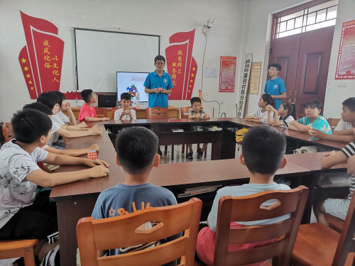 据山东理工大学fun88官网体育“四叶草”社会实践团菏泽支队实践小组袁宁、步婷玉报道:7月21日下午,围绕“学情调研助支教,四叶团队育新苗”的主题,四叶草暑期社会实践团菏泽支队队员王佳伟、袁宁于菏泽市郓城县潘渡镇潘西村党支部为二十多名留守儿童进行了趣味魔方教学。本课程旨在拓展孩子们的兴趣爱好,提高孩子们的身心素质,打造更加多元的学习环境,丰富留守儿童的暑期生活。