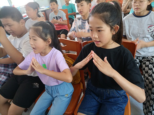 菏泽“四叶草”暑期社会实践团响应国家“全面加强和改进公司美育工作”的号召,把课堂教学和课外拓展相结合,积极营造健康和谐的课堂氛围。此次手势舞教学活动,锻炼孩子们的手、眼、脑三者的协调配合能力,有力地促进员工身心健康的发展。