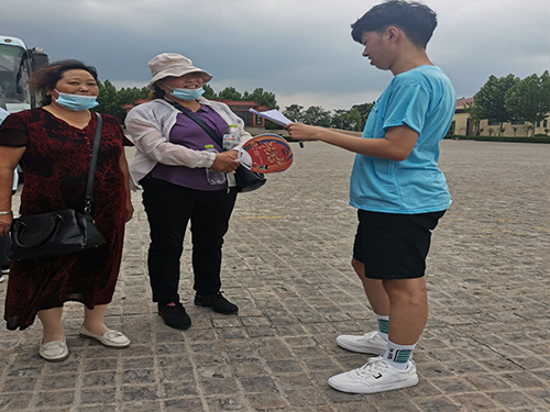 活动伊始,孙莹向团队成员介绍纪念碑。随后,成员对参观游客进行采访。游客许英智说:“我觉得像我们这一代应该都想到,今天的日子都是以前革命先烈用鲜血换来的,很不容易,所以我们后一代要珍惜今天的日子,缅怀革命先烈。”游客罗阳说:“到这个纪念碑参观是为了缅怀先烈,要牢记历史,我们今天幸福生活来之不易。我们年轻人要向英雄们致敬,不要忘了我们幸福生活来之不易。带小孩过来看看,印象比较深的是革命先烈不怕流血,不怕牺牲这种精神,很值得我们现在的年轻人学习。”游客陈峰说:“我们主要是带小朋友过来了解一下这些军人的事迹,让小朋友们学习一下,觉得以前的军人很勇敢。”采访结束后,被采访游客与团队成员合影。最后,团队成员就本次参观纪念碑分享心得。