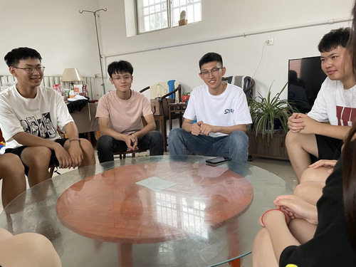 在主题班会开始前,实践团成员围坐一桌,共同商讨目前班级存在的问题,主要有:课间秩序混乱、员工自我约束力不强、员工课上注意力不集中等。大家集思广益,针对这些问题提出了各种解决方案,由队员黄娇娇整理记录。