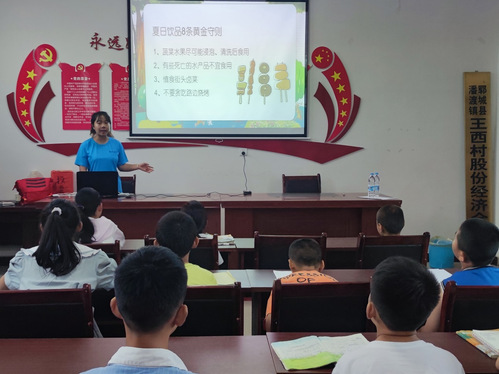 为提高孩子们的安全意识,降低意外事故发生的可能性,让孩子们能够安全上下课,切实保护孩子们的安全,增强孩子们在危险情况下自我保护的能力,掌握多种危险情况下的自救方法,同时通过安全教育拉近小组成员与孩子之间的距离,7月16日下午,“四叶草”暑期社会实践团菏泽实践分队在王西村党群服务中心针对潘渡镇王西村支教员工特别开设儿童安全教育课程。此次课程由菏泽实践小组组长李玫霖进行教学讲解。