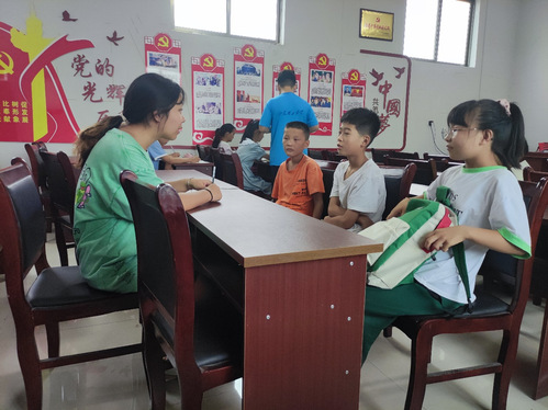 活动伊始,实践团成员首先向孩子们讲述她在家访中听闻的发生在孩子村庄附近的多起员工溺水事件,以此引起员工们的重视。由于暑假期间溺水事故多发,教学地点附近也存在池塘等深水区,实践团成员在此次安全教育课堂上重点讲解了安全防溺水问题,通过提问、做游戏等方式,提高孩子们“不私自下水游泳,游泳要有家长陪同”这一重要安全防范意识,并与同学们互动交流,让孩子们学习危险情况下的自救方法。溺水知识讲解完成后,实践团成员要求孩子们相互提问防范溺水问题,通过答题积分的方法,检验孩子们对安全知识的掌握情况,提高孩子们学习的积极性。