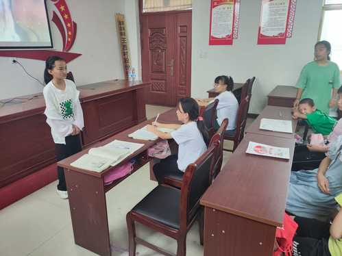 为帮助孩子拓展课外知识,提高文化素养,领略毛泽东诗词的厚重文化底蕴,把握毛泽东的文化思想和文化贡献,7月15日上午,“四叶草”暑期社会实践团菏泽支队于郓城县潘渡镇王西村举办“书香促成长,诗词润心田”毛泽东诗词鉴赏课。此次诗词鉴赏课由菏泽支队队员张耀负责组织。