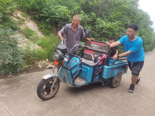 途中,留下很多珍贵的合照,越靠近山顶路越陡,而且体力消耗已经过多,实践团成员和孩子们已经开始懈怠,此时恰巧有负责维护山顶设施的工人从此经过,由于路较陡,三轮车无法顺利通过,实践团成员此时顾不得自己的疲惫,很快跑到坡底帮工人将车推到山顶,实践团成员的乐于助人也感染了孩子们,孩子们也都纷纷效仿,帮助工人推车。