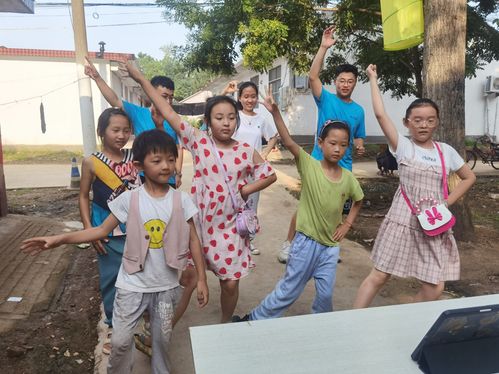 伴随着时间的推移,舞蹈也在一遍遍的练习着,孩子们的步伐手势也渐渐趋于一致,动作也越来越标准。在以往对村里的调研中发现,村里并没有广场舞一类的活动,所以此次实践团组织的广场舞活动对孩子们来说是一个全新的体验,实践团成员也曾考虑到广场舞可以增强孩子们的自信,对于留守儿童来说,自信心是必不可少的,所以,在此种情况下,举办广场舞活动是很有必要的。