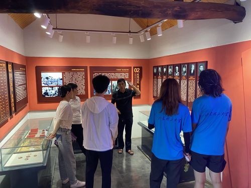 随后,团队成员来到小党山村的红色基地,当地村书记带领同学们依次参观非遗保护馆、党史馆等地点,在村书记的介绍下,团队成员了解到许多小党山村在革命战争时期发生的故事,而在党史馆的墙壁上也书写着许多小党山村的红色记忆,通过听村书记的讲解和阅读这些文字,团队成员更加深入的了解那个时代先烈们的英雄事迹。