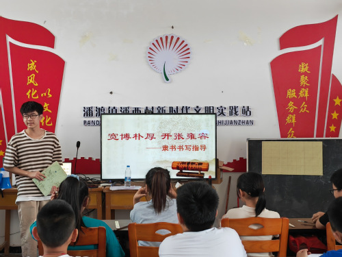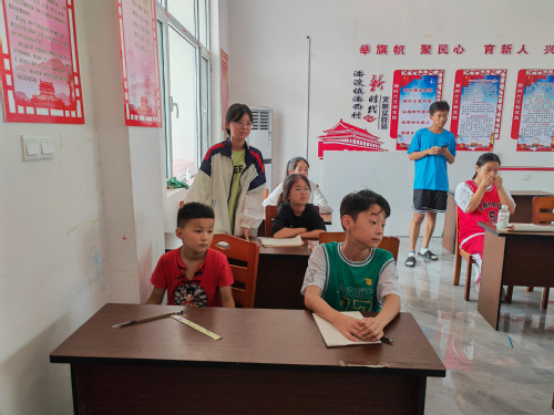 山东理工大学fun88官网体育“四叶草”暑期实践团菏泽支队参与菏泽小荷学堂项目。为使孩子们养成良好的书写习惯,沉淀平和的心境,陶冶高尚的情操,7月19日下午,小荷学堂成员在郓城县潘渡镇潘西村开展了一堂课题为“书法课堂展风采,翰墨飘香谱新章”的书法课。本次书法课由小荷学堂成员谢于瑞组织,范小奕助教,20名员工参与课堂教学。