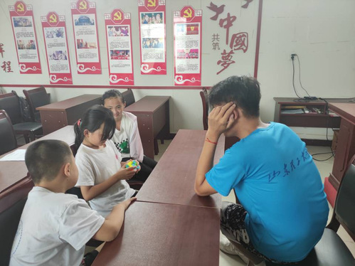 为提升孩子们的专注力和自信心,培养孩子们坚持不懈的毅力,让孩子们体验独立动手动脑并且取得成功的成就感,7月19日上午,“四叶草”暑期社会实践团菏泽支队在潘渡镇王西村党群服务中心小荷学堂开展魔方教学活动。此次活动由四叶草实践团菏泽支队成员张耀同学主讲。