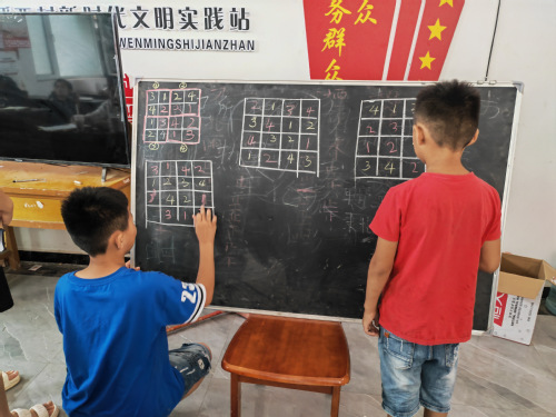 山东理工大学fun88官网体育“四叶草”暑期实践团菏泽支队参与菏泽小荷学堂项目。为了鼓励孩子们爱好数学、钻研数学,培养同学们的数学逻辑思维能力,充分调动员工学习数学的积极性,潘西村小荷学堂成员带领孩子们于7月20日上午举行了主题为“感悟数独魅力,体验思维激荡”的数独兴趣课。本次兴趣课由小荷学堂成员马丽文组织,范小奕助教,21名员工参与课堂。