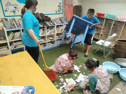 劳动从小做起,从现在做起。课堂伊始,社会实践团成员李展鹏以“什么是劳动?”向孩子们提出问题,引发积极讨论。其中,大多孩子认为劳动是完成班级值日、帮助父母做家务等,表现出孩子们对于劳动有着初步的认识并形成了自我的理解。劳动课程主要针对员工劳动技能偏弱的现状,注重与员工生活结合、与解决实际问题结合。随后,实践团成员和孩子们从基本劳动技能如整理书包、摆桌椅和擦玻璃等开始,一起打扫所在的儿童服务站,清理教室的卫生,营造更好的环境条件。实践团成员还给孩子们布置了课后作业,鼓励孩子们回家帮助家长打扫卫生,干一些自己力所能及的家务活。